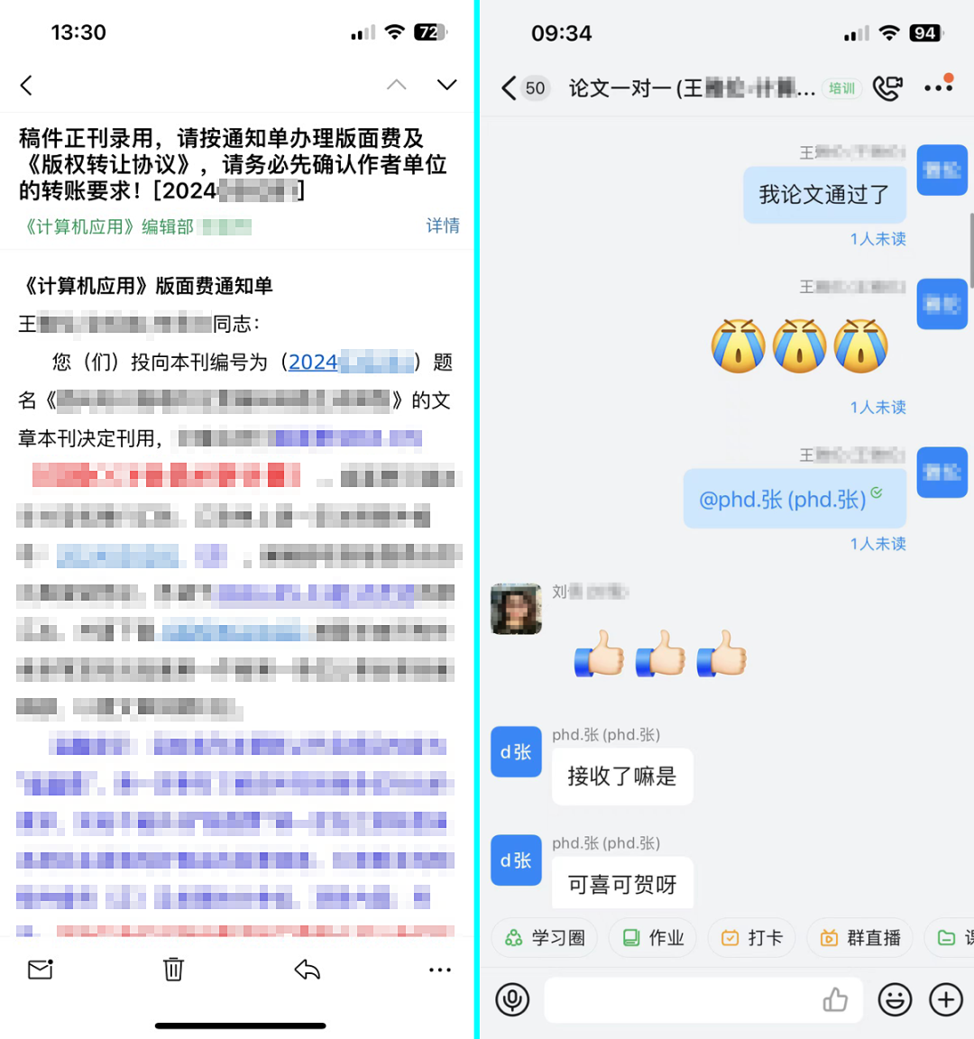 当初跟顾问刘老师沟通时,我的需求是发一篇普通一些的中文核心,能毕业保底就行。现在从结果来看,完全超预期,这篇CCF-C论文也算是对我这两年付出的认可,感谢艾思云课堂的张老师指导我完成了这篇论文。