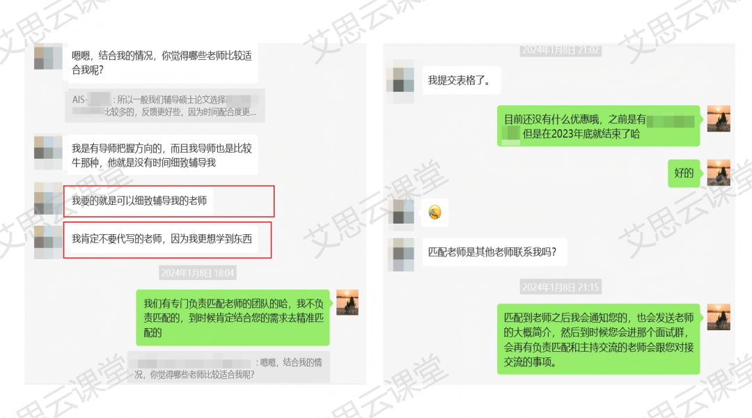 “我不需要代写,我要的是一个可以细致辅导我的老师,让我真正学会写论文。” 这是张同学在艾思云课堂提的第一个需求。