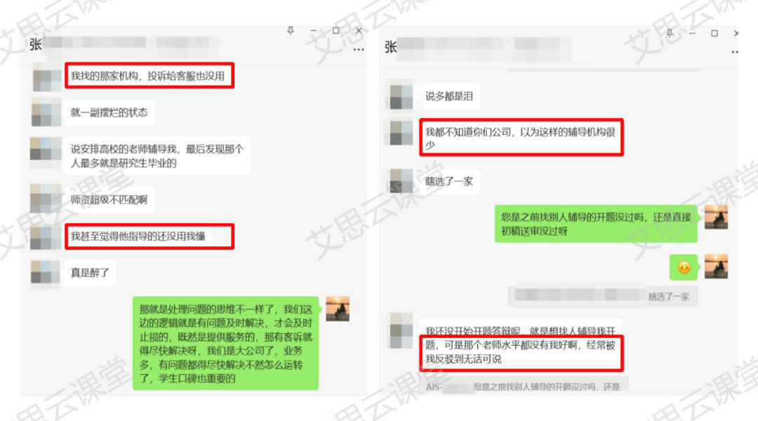 所谓的 “一对一导师” 连核心论文都没发过几篇,上课经常被问得哑口无言;找客服反应师资问题时,回复永远是:“亲,我们会反馈的” ;当她要求退款时,对方开始玩消失,各种 “财务不在” 、 “领导还在开会"……